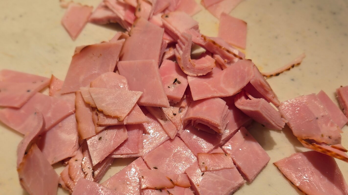 1. Den Kochschinken würfeln und die Röschen vom Kohl schneiden.