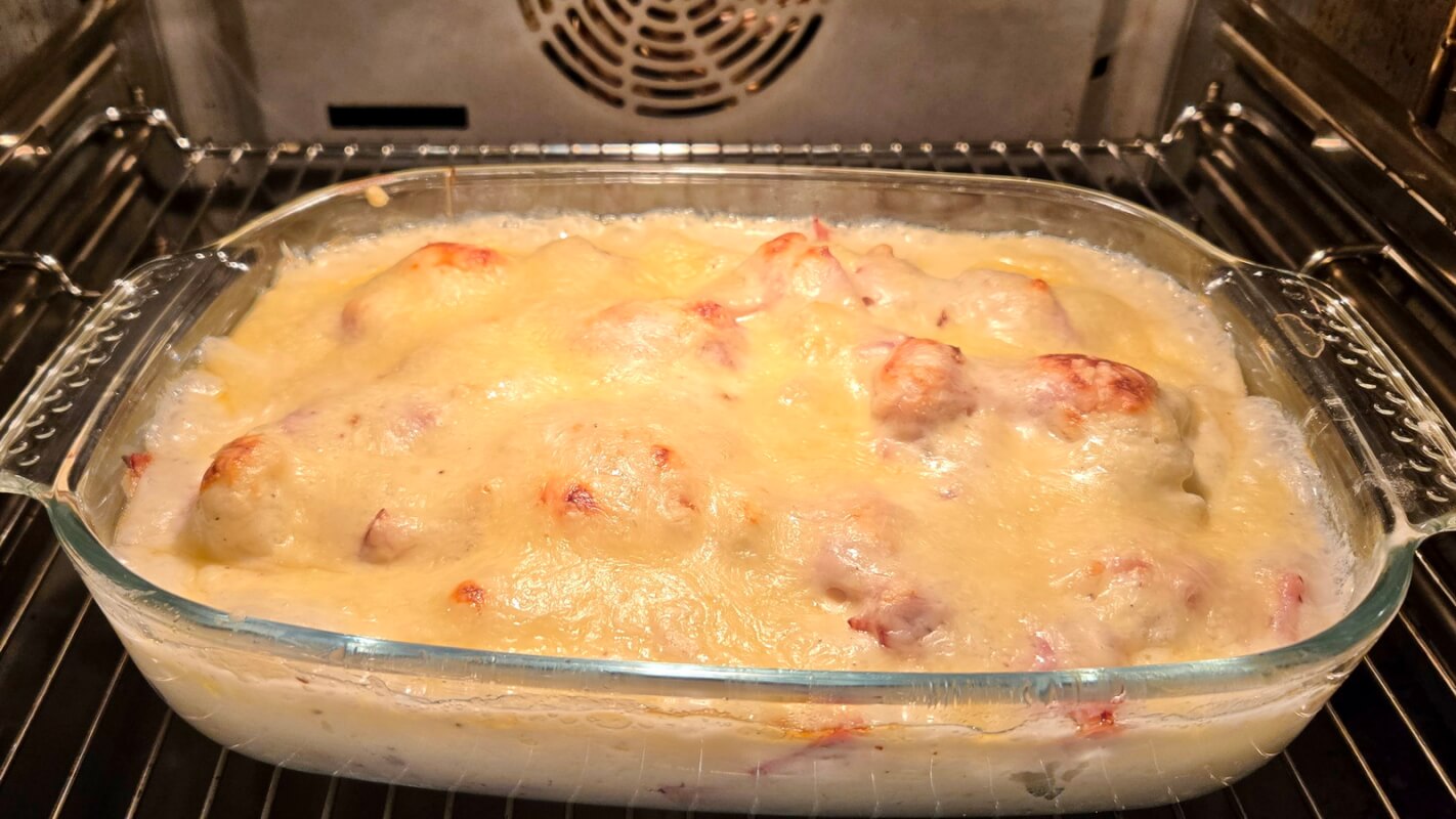 Der Auflauf ist ganz einfach in der Zubereitung und wird goldgelb mit Käse überbacken.