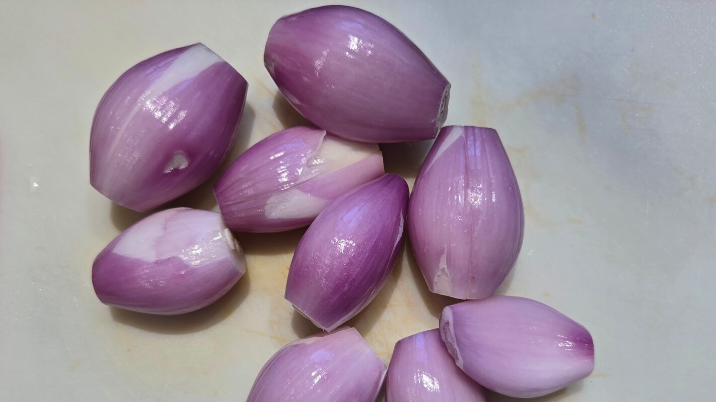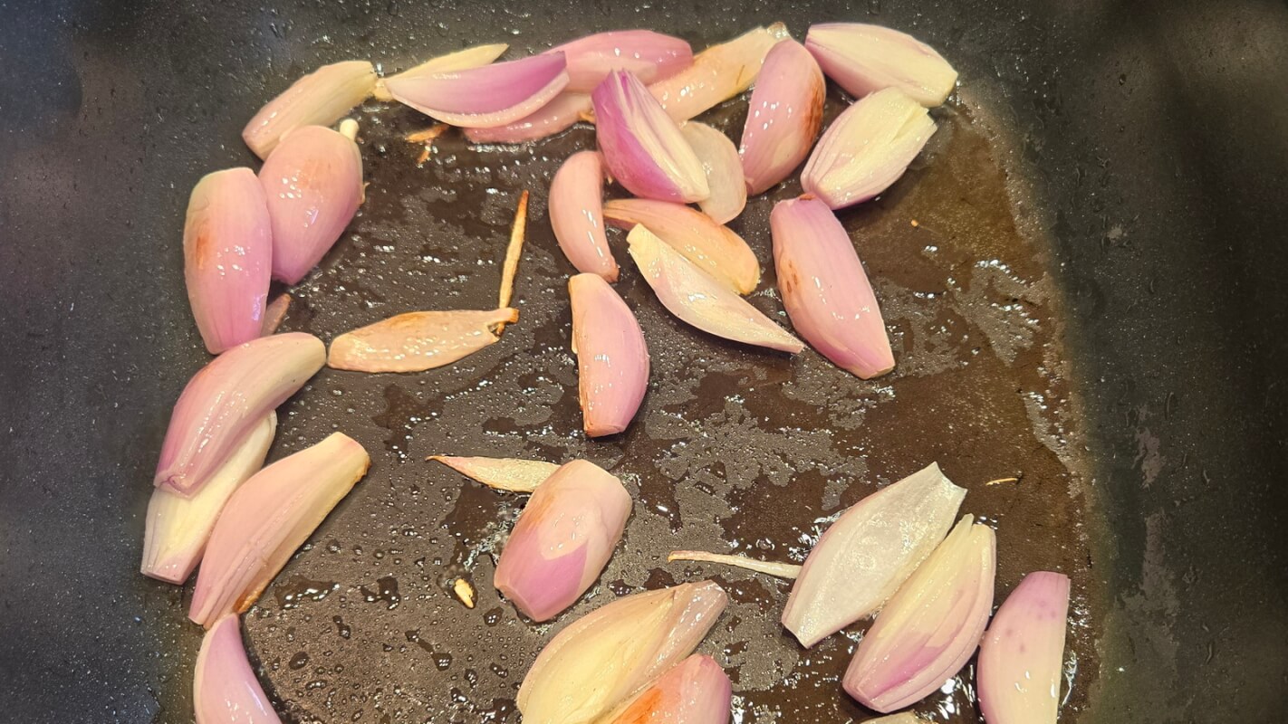 - Jetzt schälst Du die 250 g Schalotten und halbierst sie, besonders große Exemplare kannst Du auch vierteln. 1 EL Butterschmalz in einem Schmortopf erhitzen und darin die Schalotten goldgelb anbraten. Herausnehmen und zur Seite stellen.