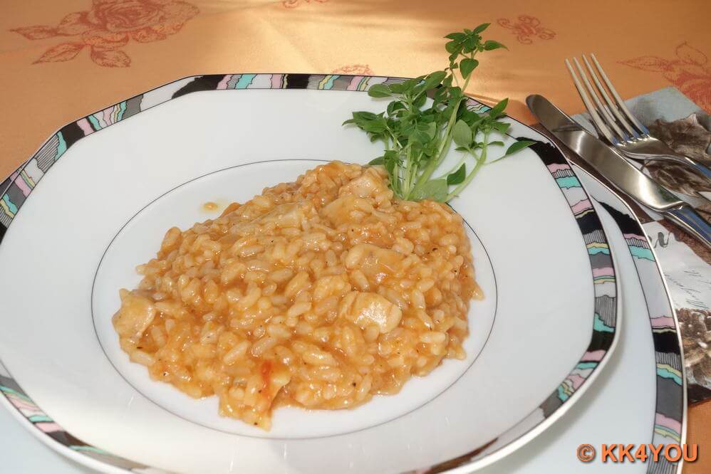 Risotto Genueser Art wird auf recht ungewöhnliche Weise zubereitet, schmeckt aber einfach köstlich. Während der Pilzsaison verwende ich die verschiedensten Sorten frischer Waldpilze, bevorzugt Steinpilze oder Maronen. Dieses Risotto kann aber auch sehr gut mit tiefgefrorenen Pilzen zubereitet werden.